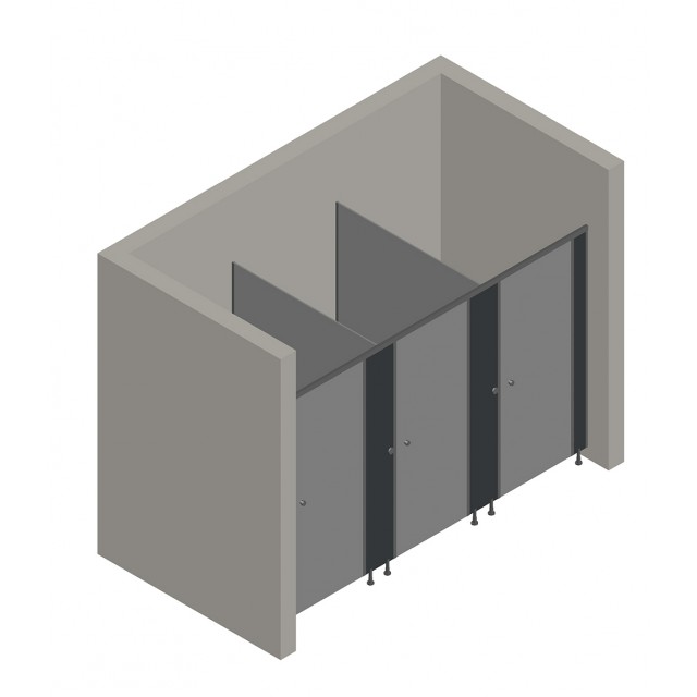 3'lü Cubicle WC Kabin (İki Bölmeli)